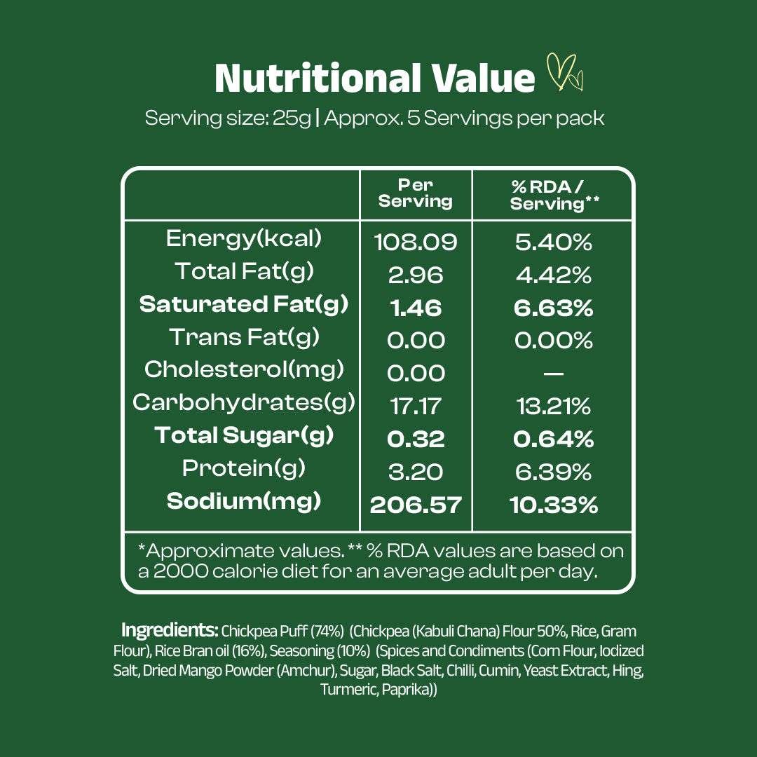 Baked Chickpea Puffs Chatpata Masala 125g | Baked Snack | No Maltodextrin | No Palm Oil | No Artificial Preservatives