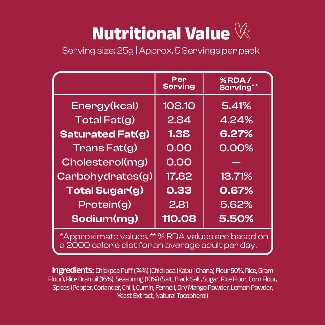 Baked Chickpea Puffs Indian Masala 125g | Baked Snack | No Maltodextrin | No Palm Oil | No Artificial Preservatives
